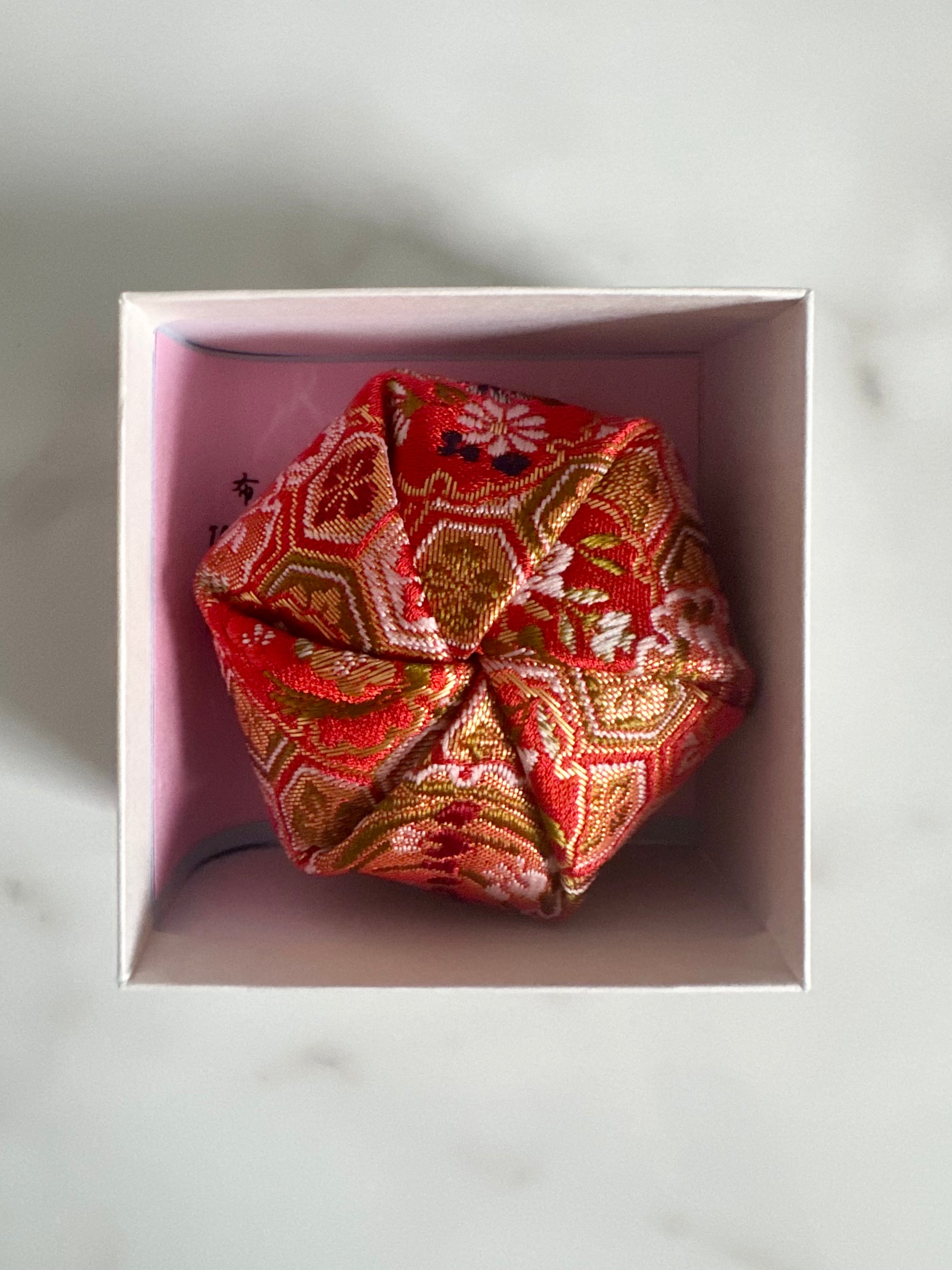 The Nuno Kogo is a traditional Japanese twist-to-open fabric box. Originally designed for storing incense, they are now primarily used to keep tiny treasures safe.
